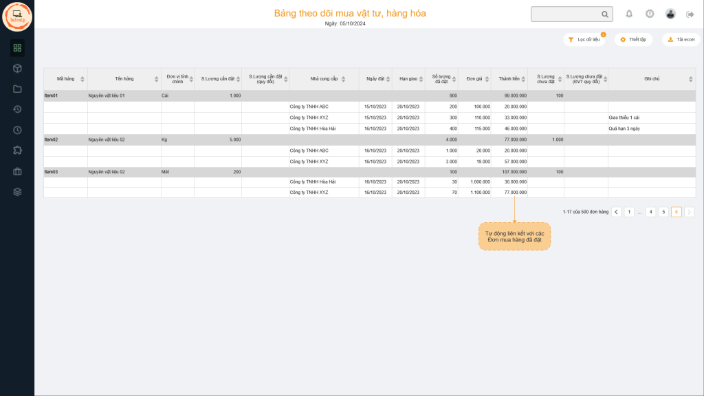 Bảng theo dõi mua hàng